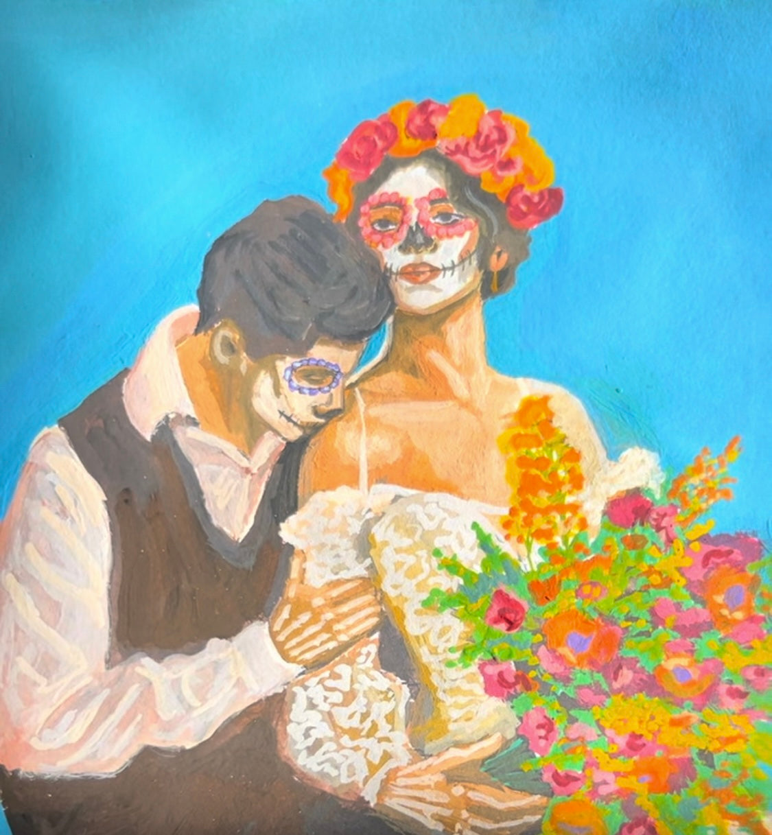 Keep a vibrant Día de los Muertos piece of art— honoring love, life, and remembrance with bold colors and tender spirit.